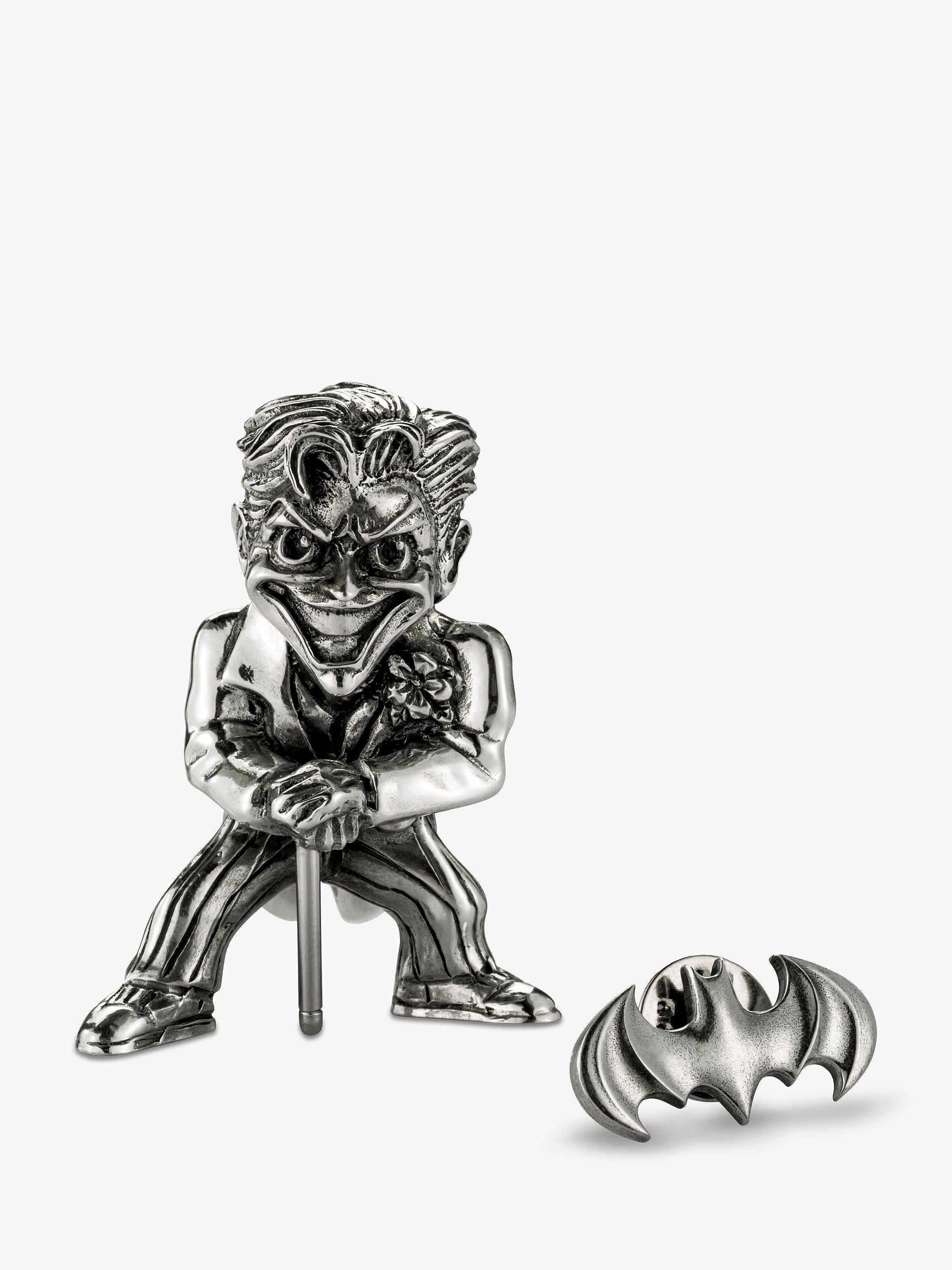 Sculpted in Royal Selangor's signature pewter, the mini figurine shows an unhinged Joker in his Bronze Age appearance and with a classic maniacal grin. His nemesis' iconic insignia, the Batarang, is reproduced as a lapel pin.