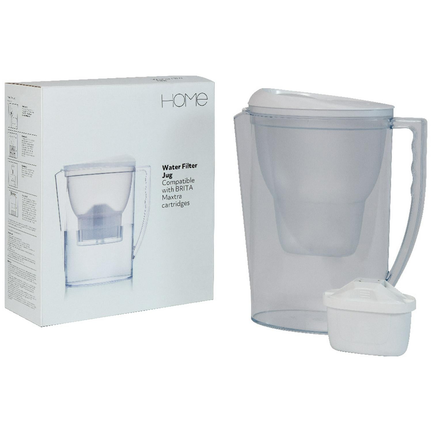 Read MoreEnjoy fresh filtered water with this jug and cartridge set. The jug fits perfectly in your fridge and has a handy indicator that lets you know when to change the cartridge. The newly improved cartridge reduces chlorine, limescale and other taste impairing impurities so you can enjoy the improved taste and quality of your water. 1 cartridge supplied (approximately 1 month pack). Suitable for all water types. Compatible with Argos Home cartridges, BRITA MAXTRA and MAXTRA+ cartridges. 100% recyclable.