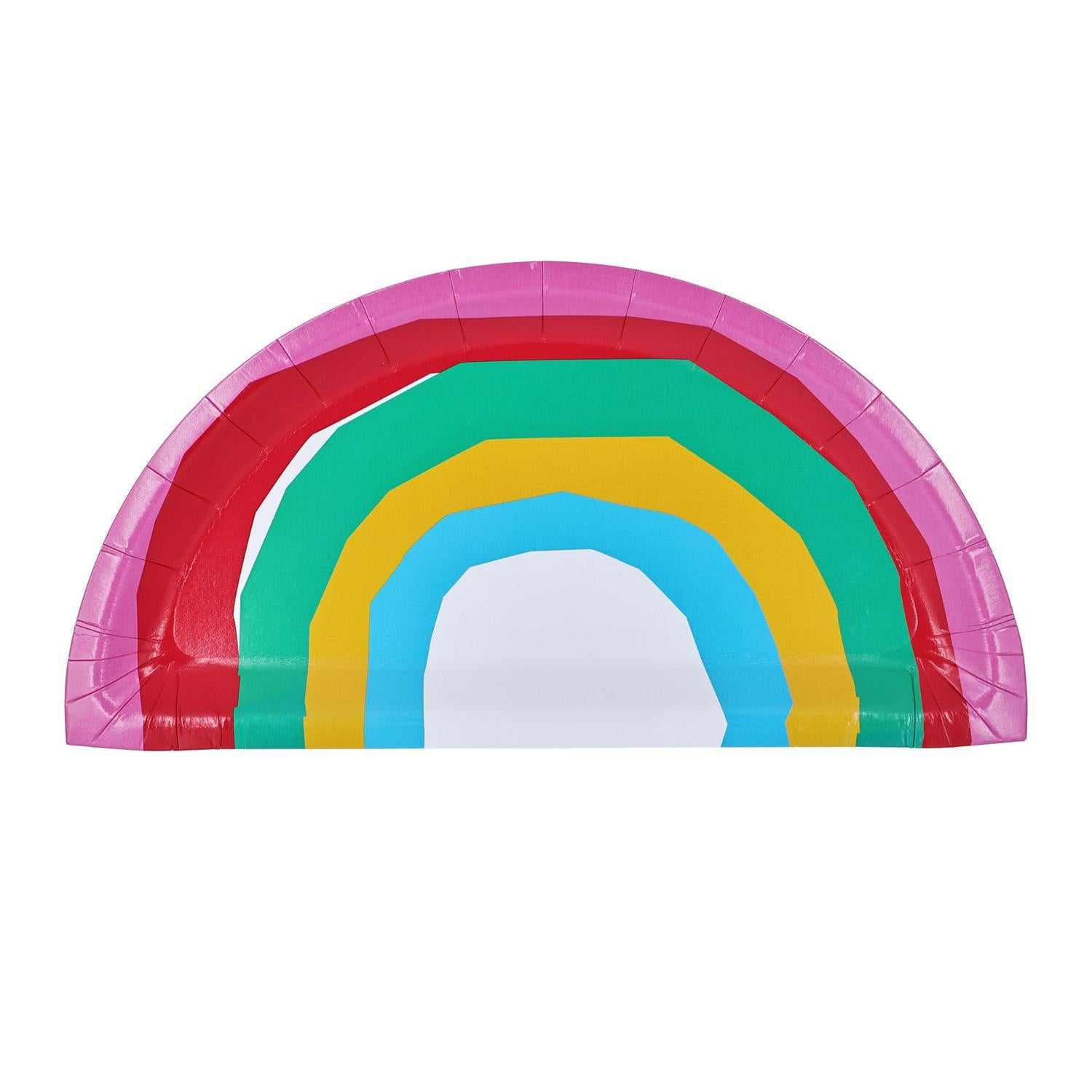 Add a vibrant touch to your next gathering with this pack of four rainbow-shaped platters from Sainsbury's Home. These colourful dishes are specifically designed for serving snacks and small party treats. Being made entirely from paper, they offer a convenient, disposable serving solution for any celebration.