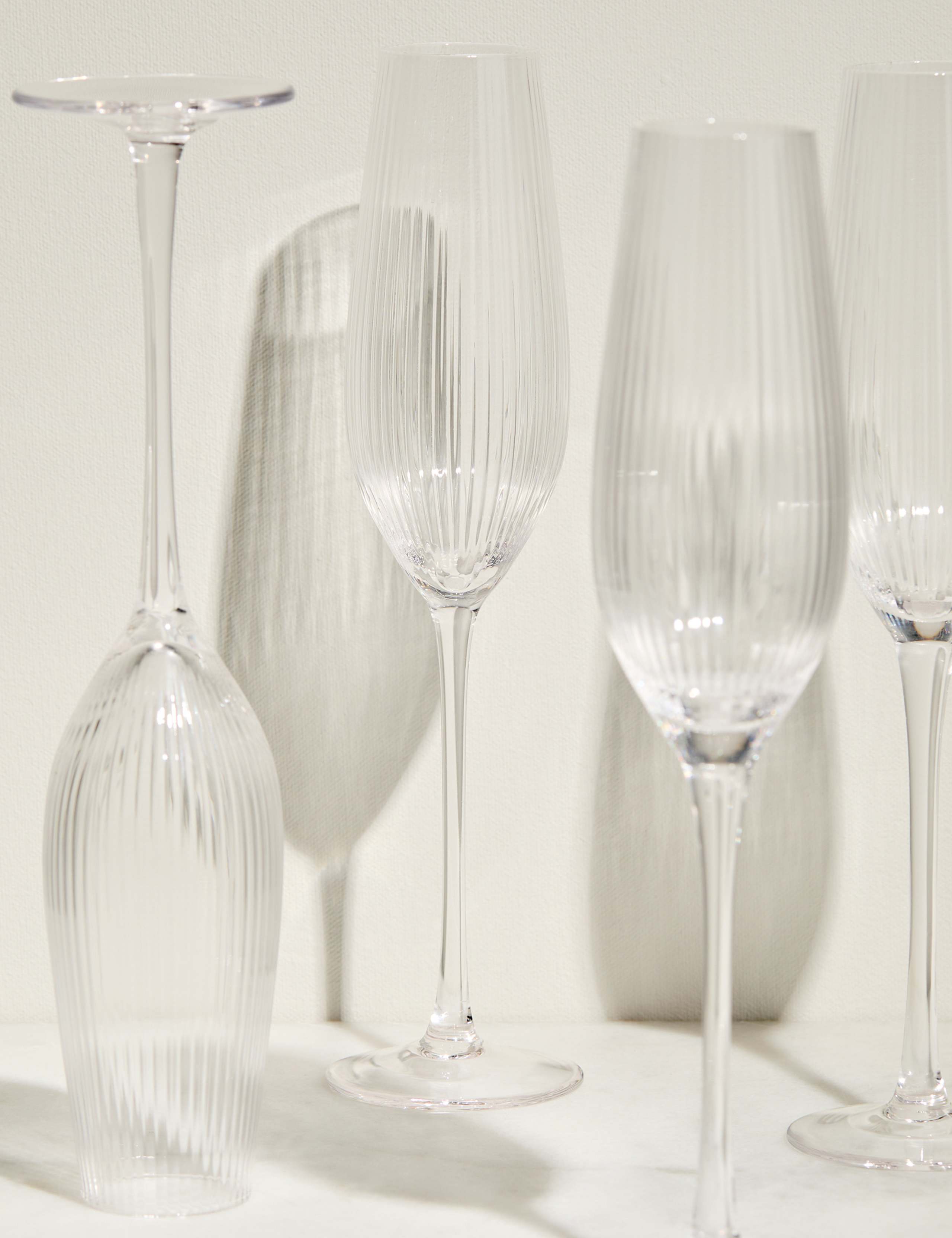 Toast to significant occasions with this complete set of six Maxim Optic champagne flutes. These glasses are constructed from transparent glass, offering clarity to appreciate your sparkling beverage. They feature a sophisticated ribbed texture providing visual interest and an enhanced tactile feel when held.