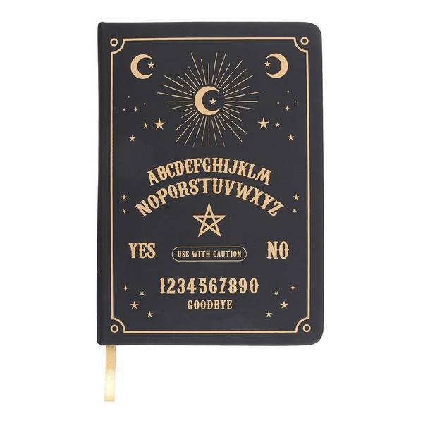 This Something Different A5 notebook features a unique Ouija board design, combining mystical aesthetics with functional writing space. Constructed from paper and cardboard, this black journal incorporates striking gold foil elements for an elegant, mysterious look. The slim profile makes it convenient for daily use, whether for notes or journaling.