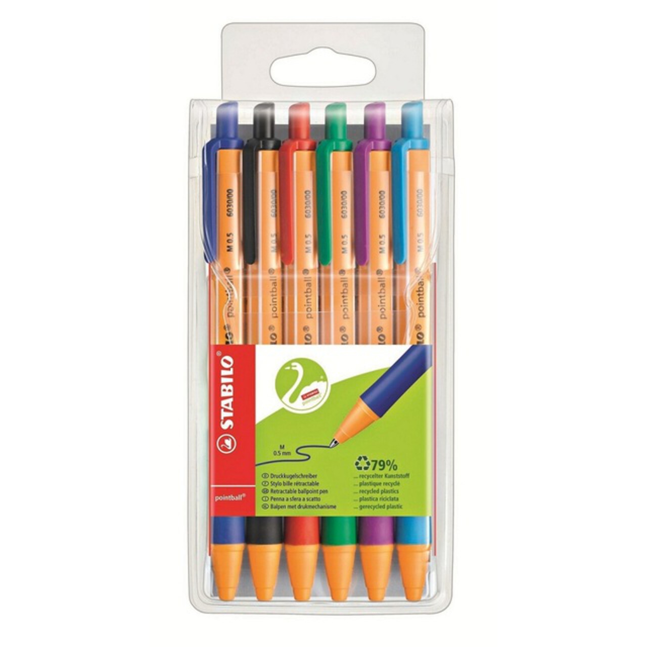 Environmentally friendly ballpoint pen in the style of the established Point 88. Manufactured from 79% recycled plastic, with non-slip grip zone and refillable with all STABILO Ballpoint Refills.