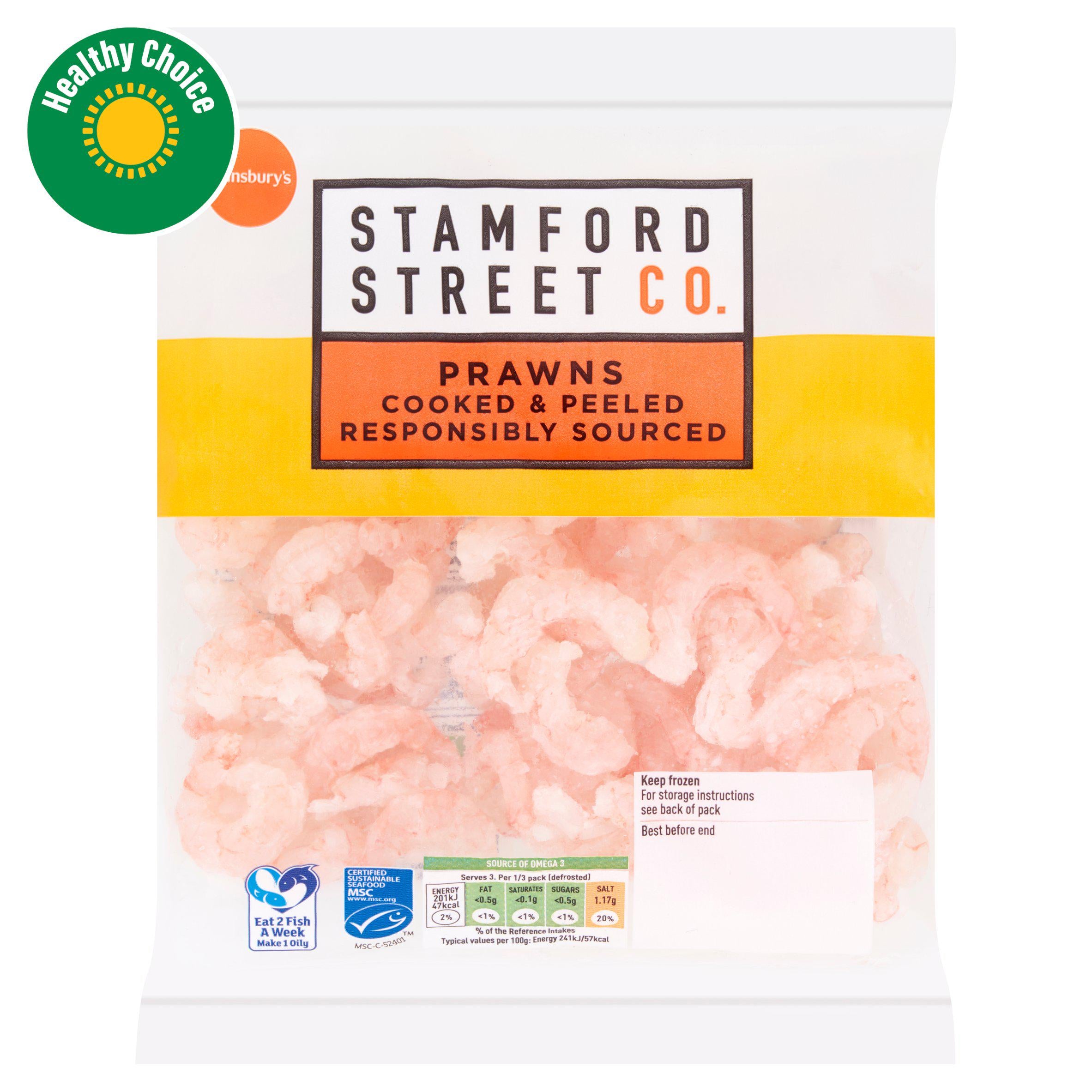 Packed in Iceland, North-East Atlantic, North-West Atlantic, for Sainsbury's Supermarkets Ltd, London, EC1N 2HT and Sainsbury's Supermarkets Ltd, Upper Galwally, Belfast BT8 6FX, using prawns caught with trawls in the North East Atlantic (Barents Sea and Spitzbergen and Bear Island) and the North West Atlantic Ocean