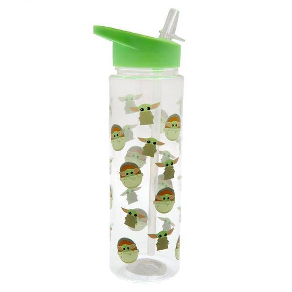 Stay hydrated with this officially licensed Star Wars: The Mandalorian plastic water bottle featuring the character Grogu. This durable bottle is perfect for carrying your drink to work, school, or on the go. It features practical elements designed for everyday convenience.