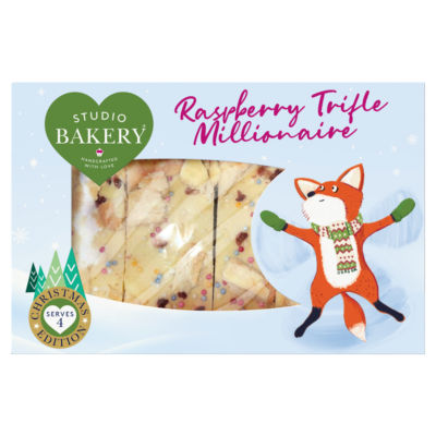 This indulgent Studio Bakery offering combines rich textures in one layered dessert experience. It features a sturdy base incorporating butter, sugar, and fortified wheat flour for structure. The layers are unified by a sweet topping that includes 22% Belgian White Chocolate for distinct flavour. Be aware that this product contains Milk, Soya, and Wheat in its core formulation.
