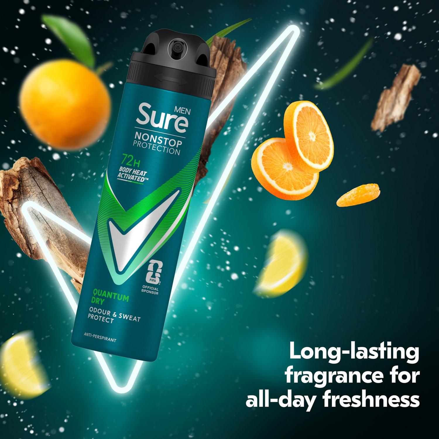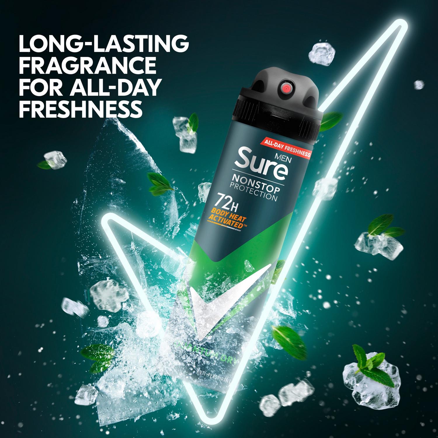 Read MoreSure Men Nonstop Protection Quantum Dry Anti-Perspirant Aerosol Deodorant provides 72-hour odour and sweat protection