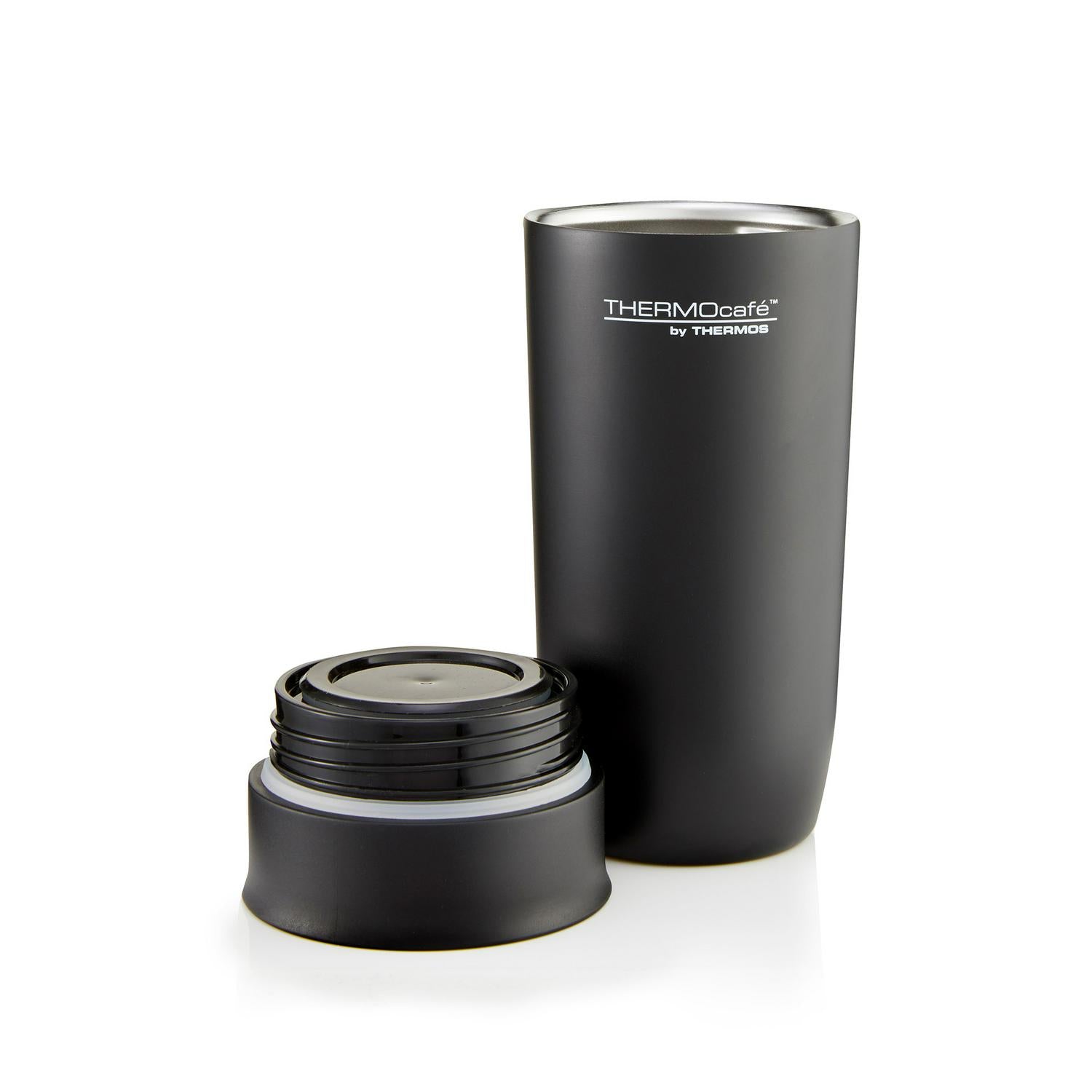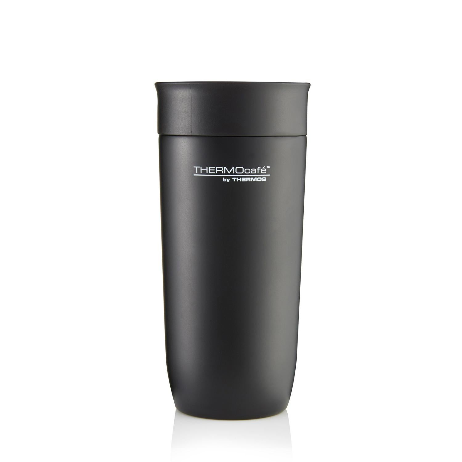This Thermocafe Black Travel Tumbler features a robust stainless steel exterior built for daily use and longevity. It remains cool to the touch when holding hot beverages and resists condensation when carrying cold drinks. The design incorporates an ergonomic push-button lid for easy access when you are moving throughout your day.