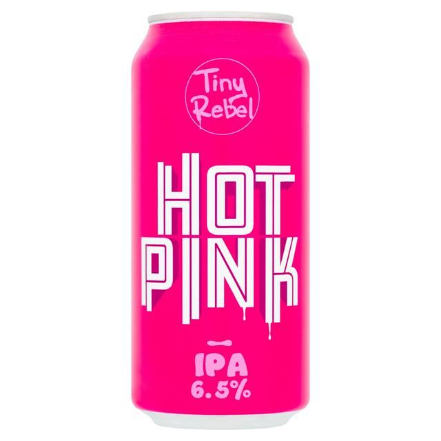Tiny Rebel presents the Hot Pink IPA in a convenient 440ml can format. This beverage is brewed using a combination of malted barley, malted wheat, hops, and yeast. The manufacturer focuses on creating drinks that generate conversation while working towards improving their community and planet commitments.