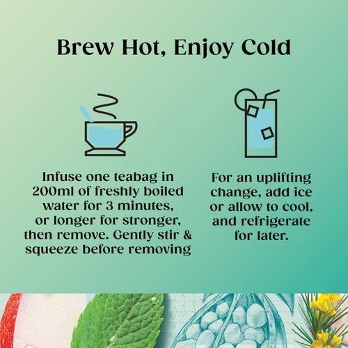 Simply use freshly boiled water and infuse the bag for at least 3 minutes. Give the teabag a few little stirs and a gentle squeeze to release the flavour before removing it from the cup.
