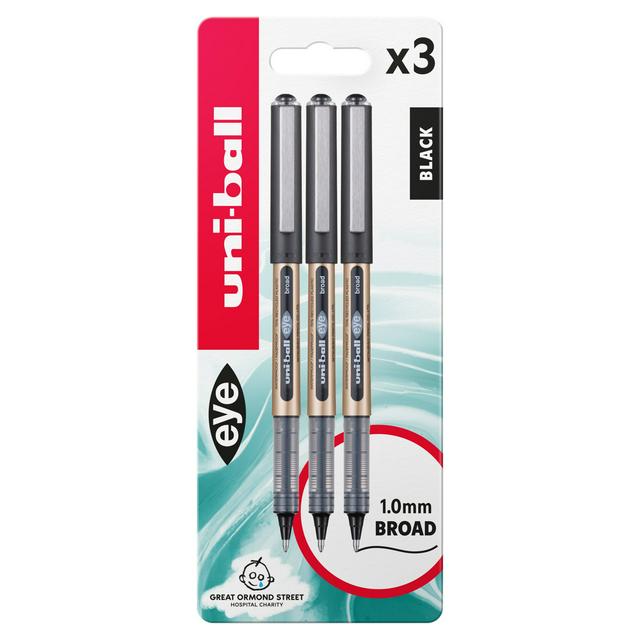 This Uni-ball Eye Broad pack contains three stylish rollerball pens featuring polished rose-gold barrels. Designed for the expressive user, these pens deliver consistent, clear script through a broad 1.0mm tip.