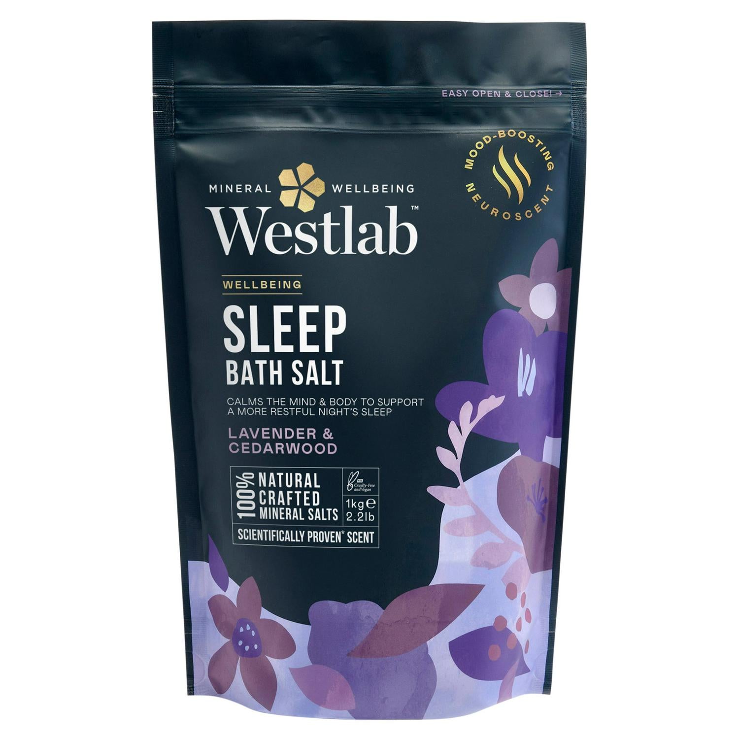 This Westlab Wellbeing product combines carefully crafted mineral salts with a mood-boosting neuroscent to support a more restful night's sleep. It is formulated using 100% natural ingredients specifically intended to calm both the mind and the body during your evening bathing ritual.
