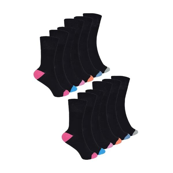 Product InformationProduct Information 12 pack ladies black cushioned soft breathable bamboo socks 70 bamboo fibre 27 polyester 3 elastaneFeaturesladies 12 pack bamboo heel toe socks we know youre very busy its hard to find time to take care of yourself so weve made it easy for you with these ladies... Read More