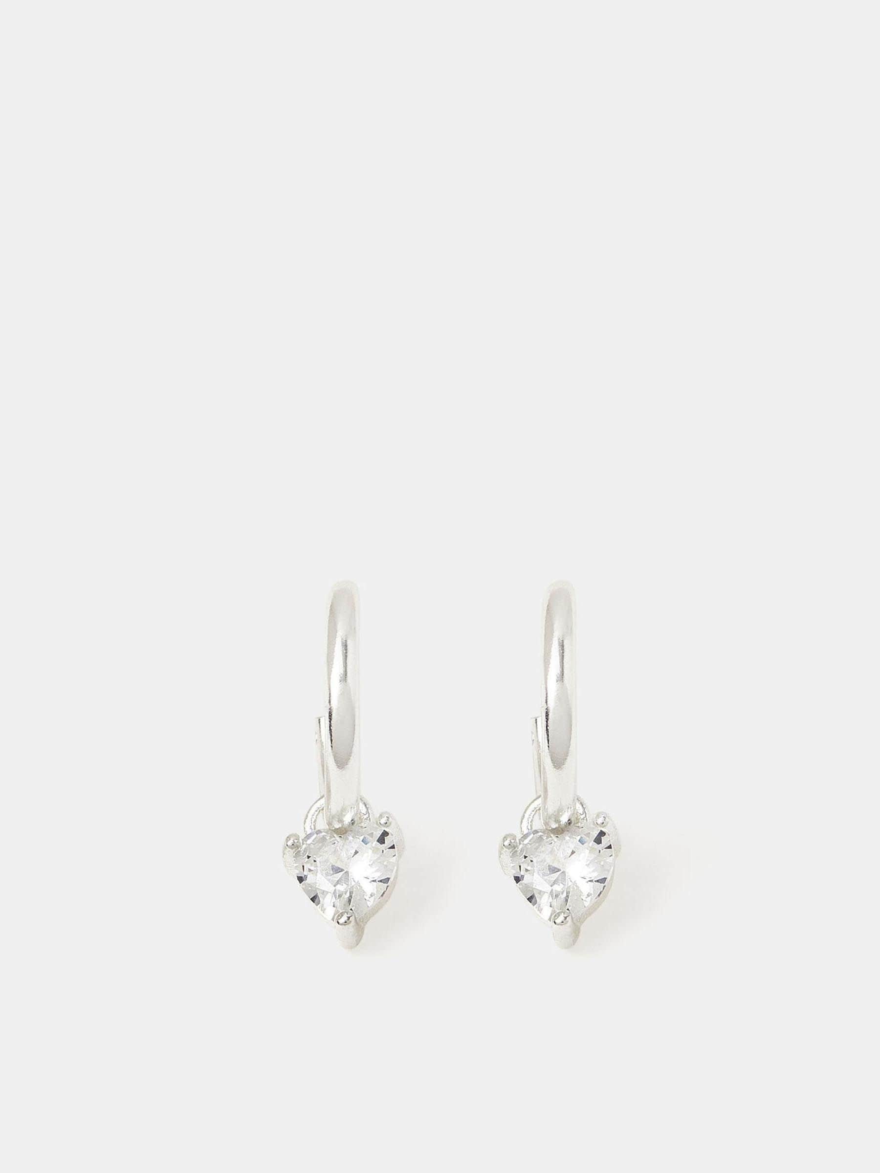 A little love always goes a long way. designed in sterling silver, these hoops feature a diamanté charm shaped like a love heart. Non-refundable.