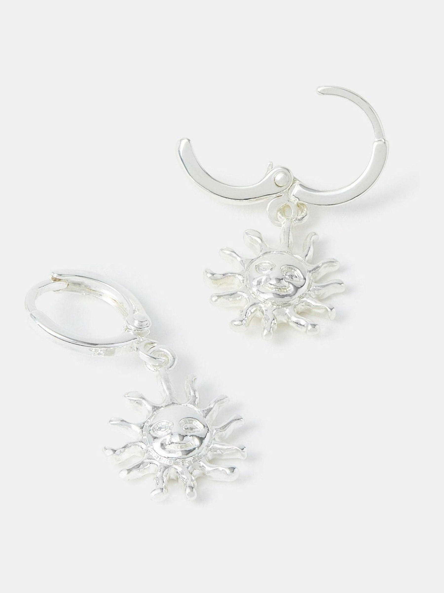 Accessorize Silver Tone Sun Charm Hoop Earrings