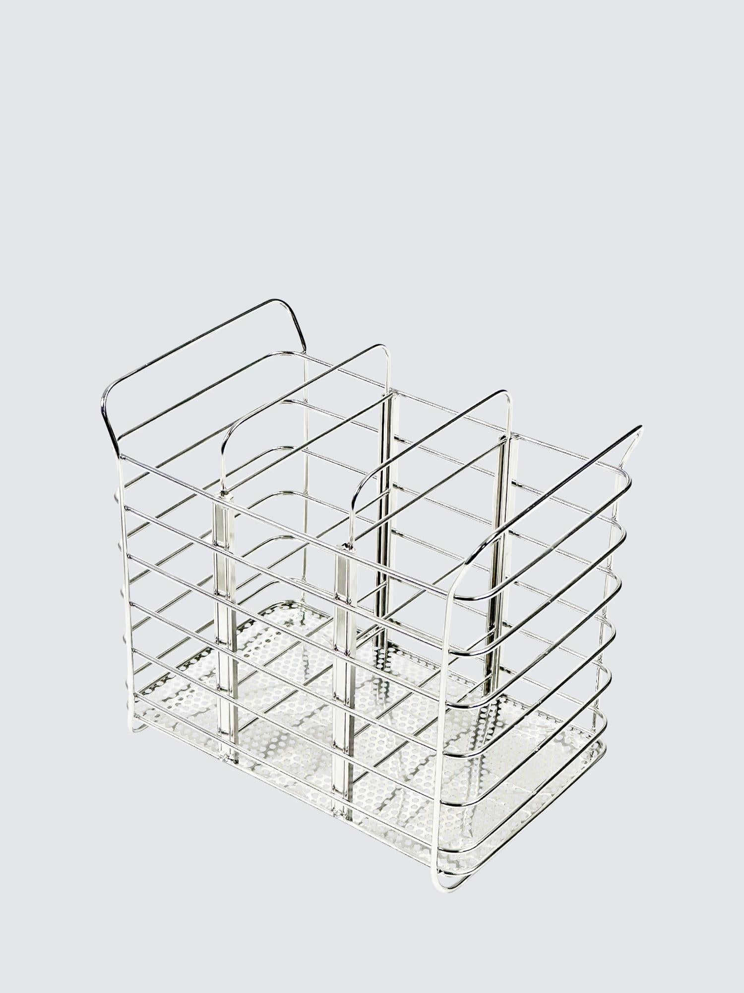 Streamline your sink space with this stainless steel organiser. Featuring two removable inner panels, it's fully customizable to fit bottles, utensils, and other items.