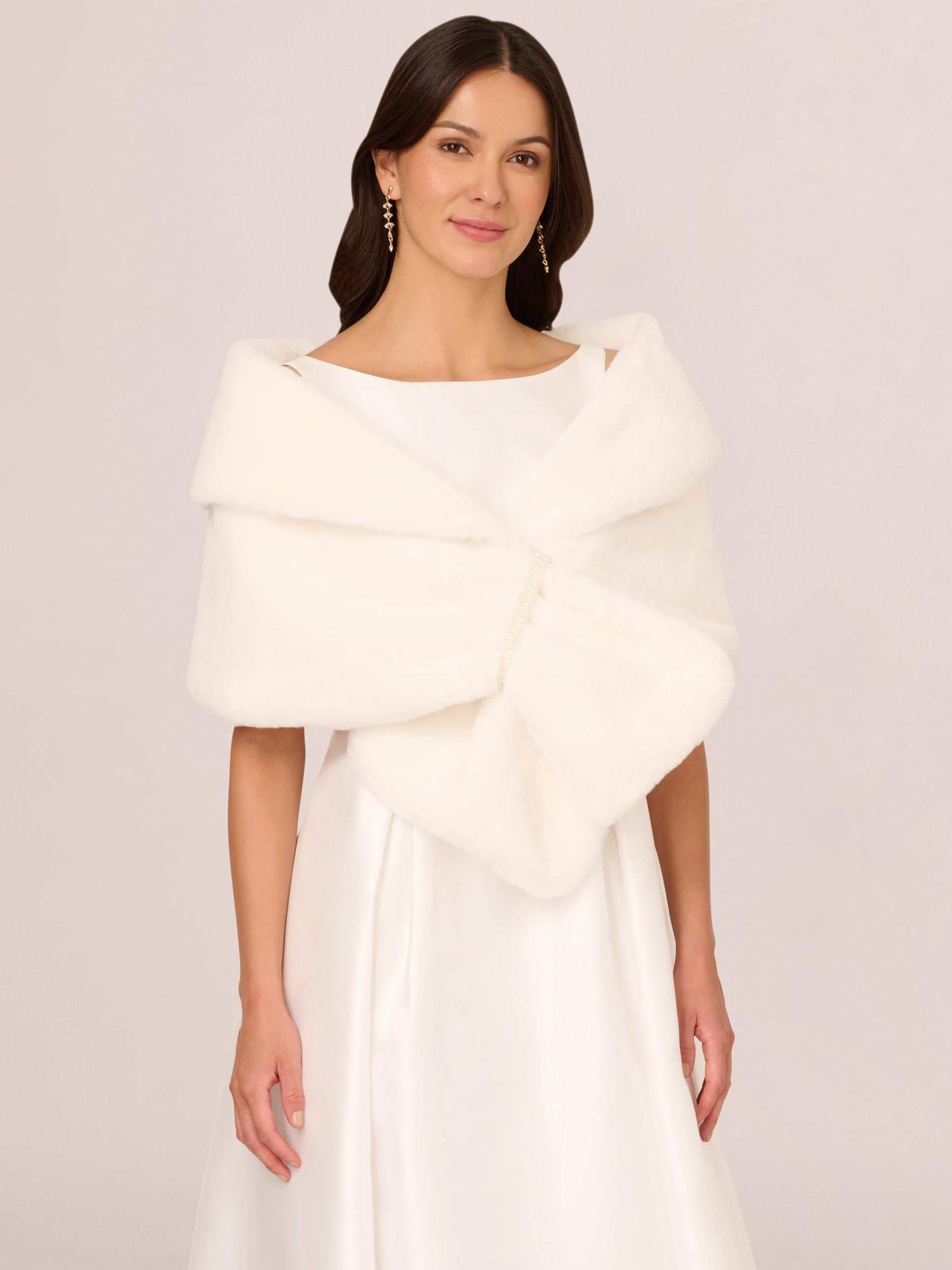Adrianna Papell presents this elegant Faux Fur Wrap, perfect for adding old-world luxury to your ensemble this season. Featuring plush construction, a silky satin lining, and a pearl accent, this accessory provides exceptional warmth for all cooler evenings. The wrap secures easily by strap