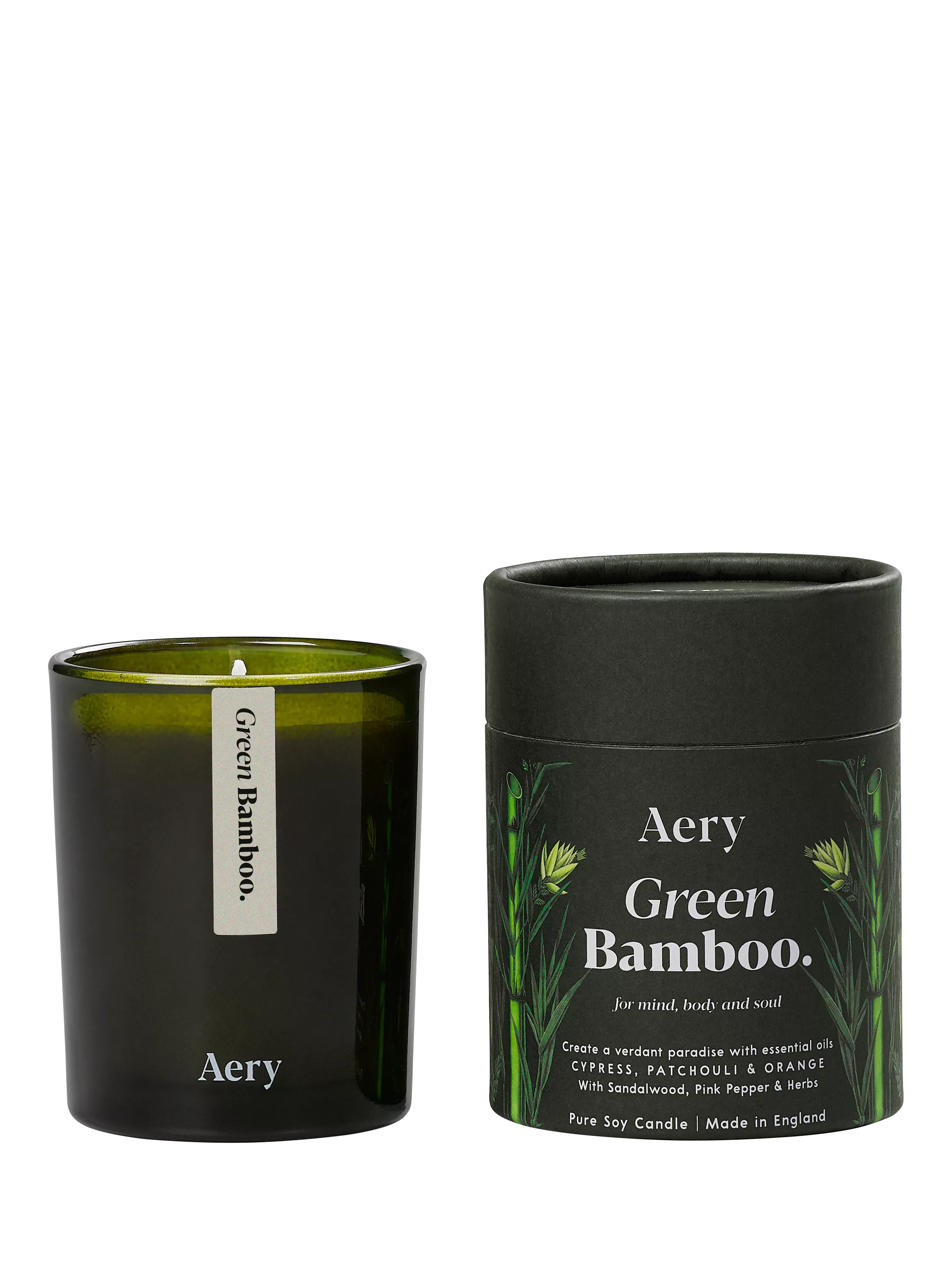 Indulge in the calming aroma of our Aery Green Bamboo Scented Candle, a luxurious blend of essential oils crafted for a serene atmosphere. This 200g candle, perfect for creating a tranquil ambiance at home, offers a unique sensory experience.