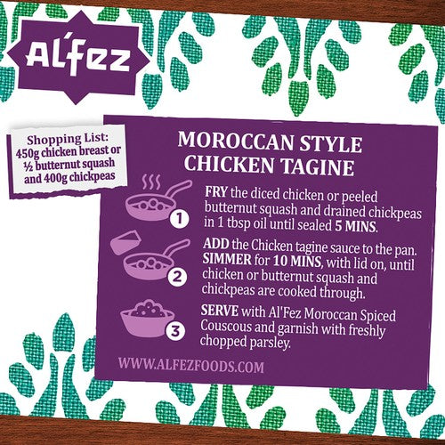 Recreate the delicious flavours of Morocco easily with Al'Fez Moroccan Style Chicken Tagine Sauce. This specific Apricot & Coriander blend offers a mildly sweet and distinctly herby taste profile perfect for authentic results. Although traditionally cooked in a clay vessel, this versatile sauce is developed for convenient preparation directly on a standard kitchen hob.