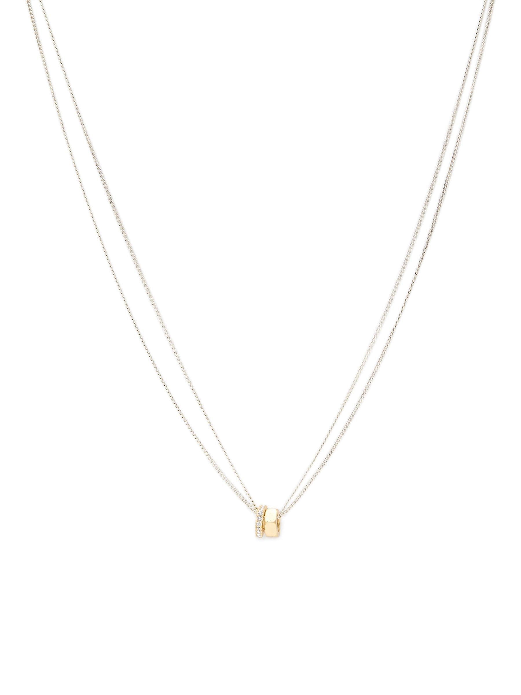 Refined chain necklace featuring bolt charm pendants with a signature hexagon silhouette. Adorned with minimal crystal stones. Necklace has an adjustable lobster clasp closure. Made from brass and glass crystal. Dimensions - Length: 406mm + 51mm Extender, Pendant Width: 2-4mm, Pendant Drop: 8-10mm.