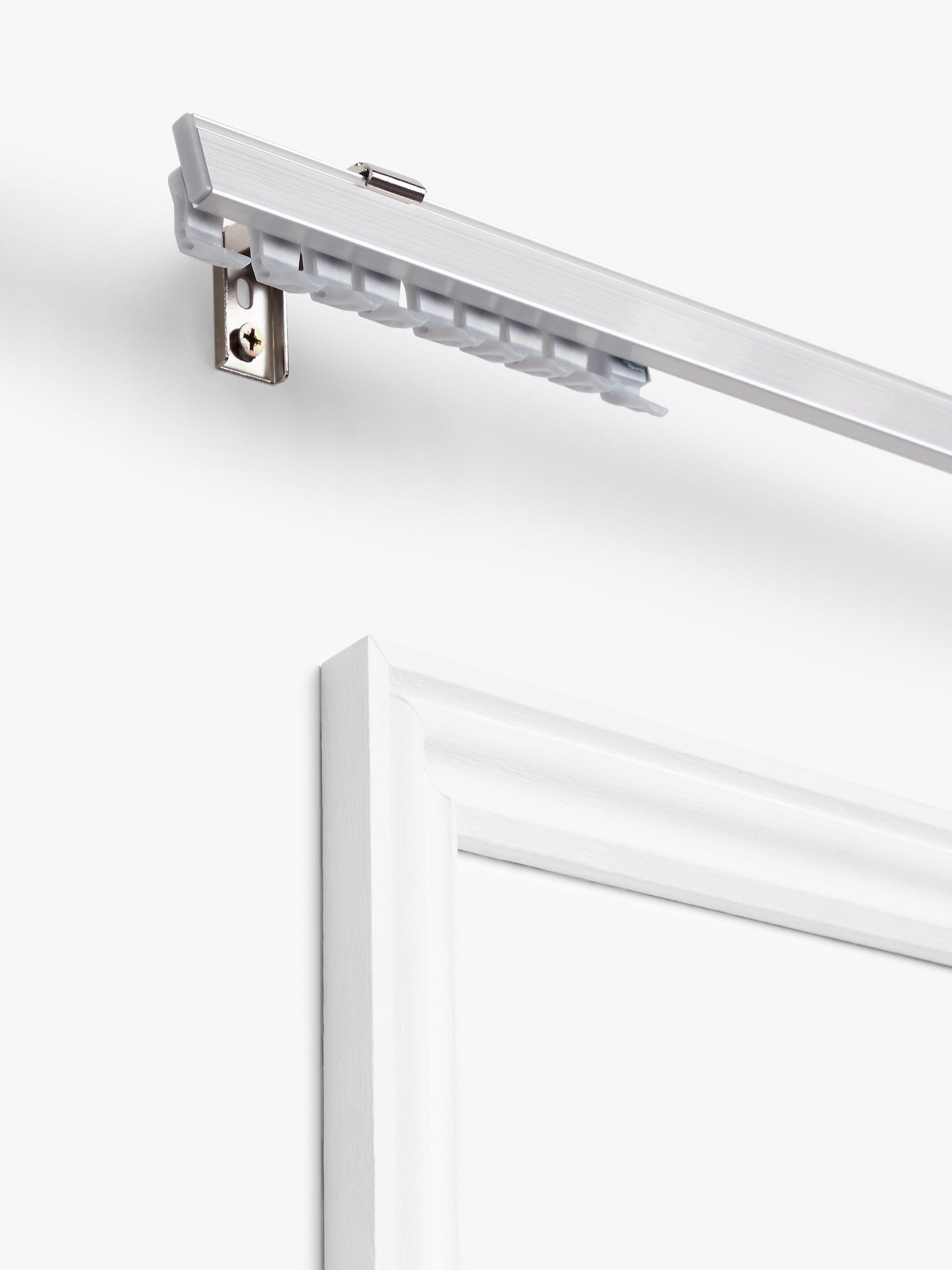 This John Lewis Aluminium Uncorded Medium Weight Curtain Track, finished in silver, offers a robust support solution for your window dressings. It is specifically engineered to handle medium to heavy curtains effectively, ensuring longevity. Its bendable design simplifies tricky bay window fittings, providing clean operation.