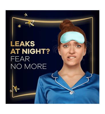 Read MoreDon't settle for less than a good night's sleep with up to 10h protection. Always Ultra Secure Night (Size 4) sanitary towels with wings come with absorbent & gentle feel top layer. They are designed with 3 protection features so that you don't wake up to check for leaks or change your pad halfway through the night. A 60% larger back (vs. Always Ultra Normal size 1) paired with our LeakGuard technology locks liquid and helps to prevent leaks, and Odourlock technology neutralises odours during period nights. Always Ultra pads are dermatologically approved by the Skin Health Alliance. Visit always.co.uk