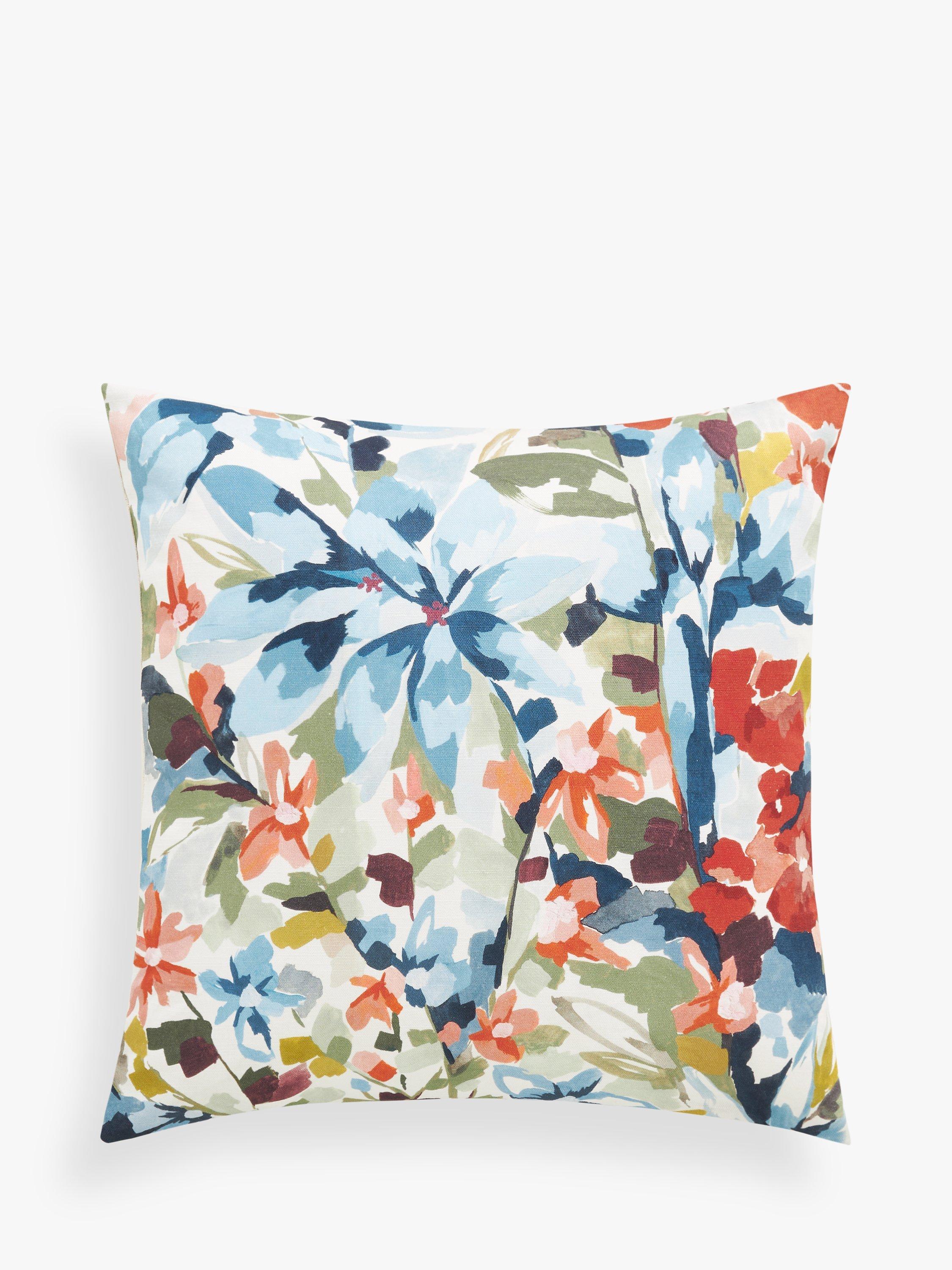 The John Lewis Amberley Cushion Multi features a vibrant, colourful design. This cushion showcases an appealing floral abstract print upon a textured woven fabric base. It offers decorative style with a contrasting plain reverse side, suitable for modern interiors. This piece adds easy visual interest to your living space instantly.