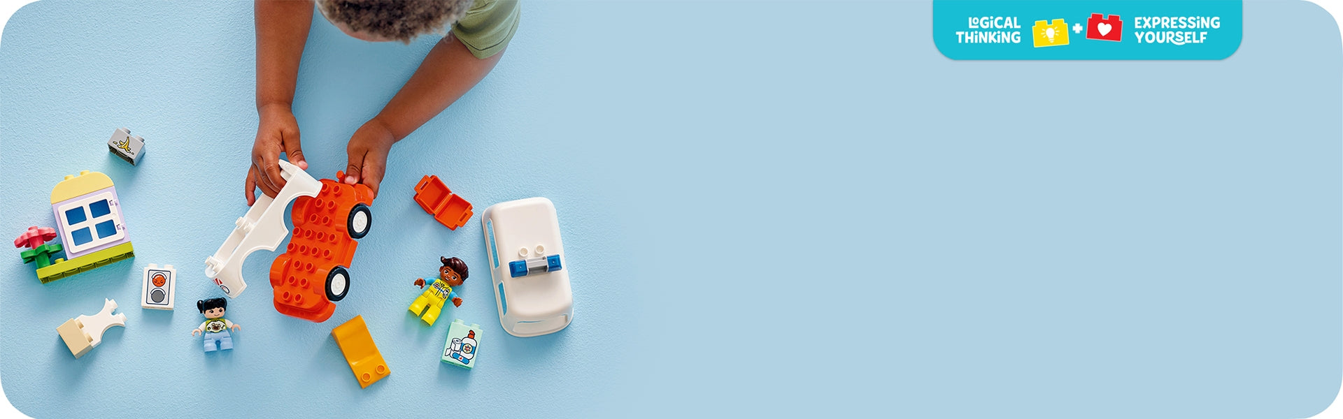Caring toddlers pretend play exciting rescue scenes with the Ambulance & Driver (10447) toy for preschool kids. This toddler toy also includes a drivable ambulance toy and 2 LEGO® DUPLO® figures, a paramedic and girl, for creative imaginary play.