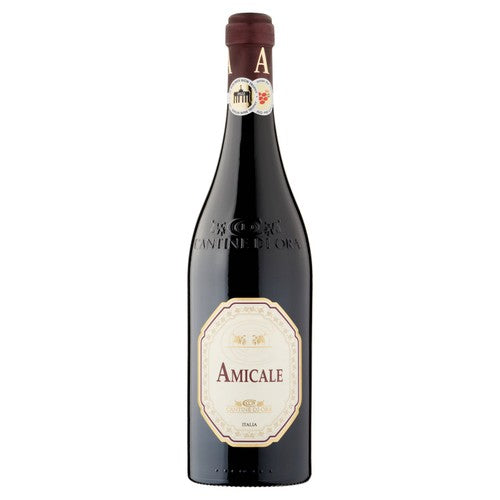 Discover Amicale Rosso, a classic Italian red wine presented in a medium ruby colour for the eye. This wine offers a delicate nose dominated by the aromas of sweet cherries and ripe dark berry fruits. It is crafted to be satisfyingly dry and soft on the palate, ensuring a very pleasing drinking experience from start to finish.