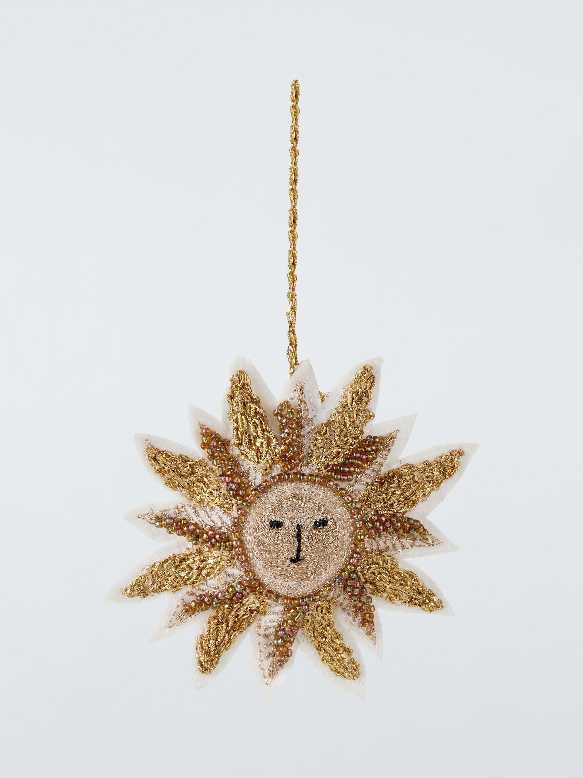This Ancient Wonders Beaded Sun Tree Decoration presents an artisanal quality perfect for your seasonal home setup. The ornate design features comprehensive, shimmering beadwork, making this festive bauble a unique and eye-catching focal point for your Christmas tree. It hangs securely, providing enduring radiant sparkle across your entire decoration arrangement.