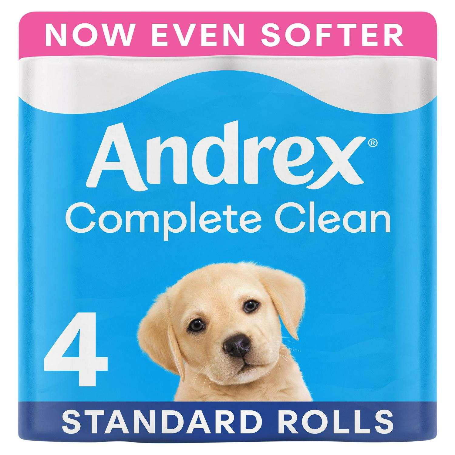 Choose Andrex Complete Clean toilet rolls for dependable household hygiene.