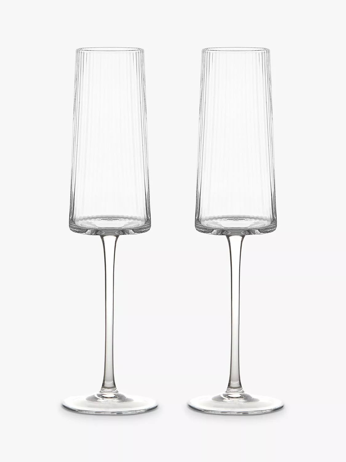 Handmade and mouthblown with fluted optics, this pair of champagne flute glasses have an elegant and modern silhouette.