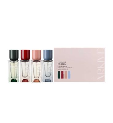 Explore the ARKIVE makes scents range with this Discovery Set featuring four pocket-sized fragrances for hair and skin. Each bespoke Eau de Parfum is formulated to stand out individually or be layered together. This set allows you to experiment with complex scent profiles tailored for personal blending.