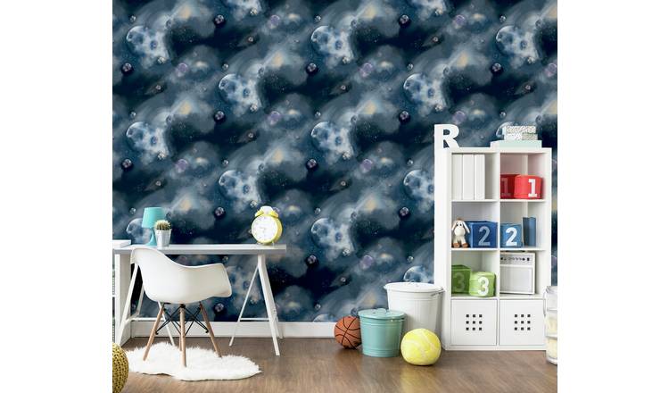Make your space look truly out of this world. With a lustrous tonal background, scattered all over with glitter, you can be sure of instant wow-factor, giving your space a new dimension. It's a wallpaper for adventures and imagination without limits. With a bold navy background for statement style, and pops of colour from planets, this is a striking paper that's equally at home on a feature wall, ceiling or throughout a bedroom or playroom.