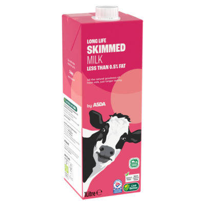 This 1-litre carton of ASDA Long Life Skimmed Milk offers the natural goodness of fresh dairy while remaining shelf-stable. It maintains less than 0.5% fat content across the entire volume. This product is also suitable for those following a vegetarian lifestyle.
