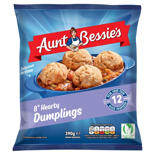 These Aunt Bessie's Hearty Dumplings provide a warming addition to any traditional meal. Made with simple ingredients, these substantial dumplings are designed to enhance your favourite casseroles and stews perfectly. They offer a convenient way to elevate your home-cooked dinner experience.