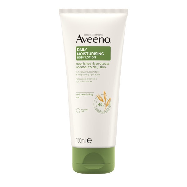aveeno daily moisturising lotion is formulated with nourishing oats and rich emollients to help strengthen the skins natural barrier and protect it against external aggressors and water loss this nongreasy fast absorbing lotion leaves skin feeling soothed and comfortable whilst nourishing and helping to prevent dry skin it is suitable for normal to dry skin and is formulated for sensitive skin types aveeno daily moisturising lotion provides up to 48 hours of moisturisation after 4 weeks continuous use