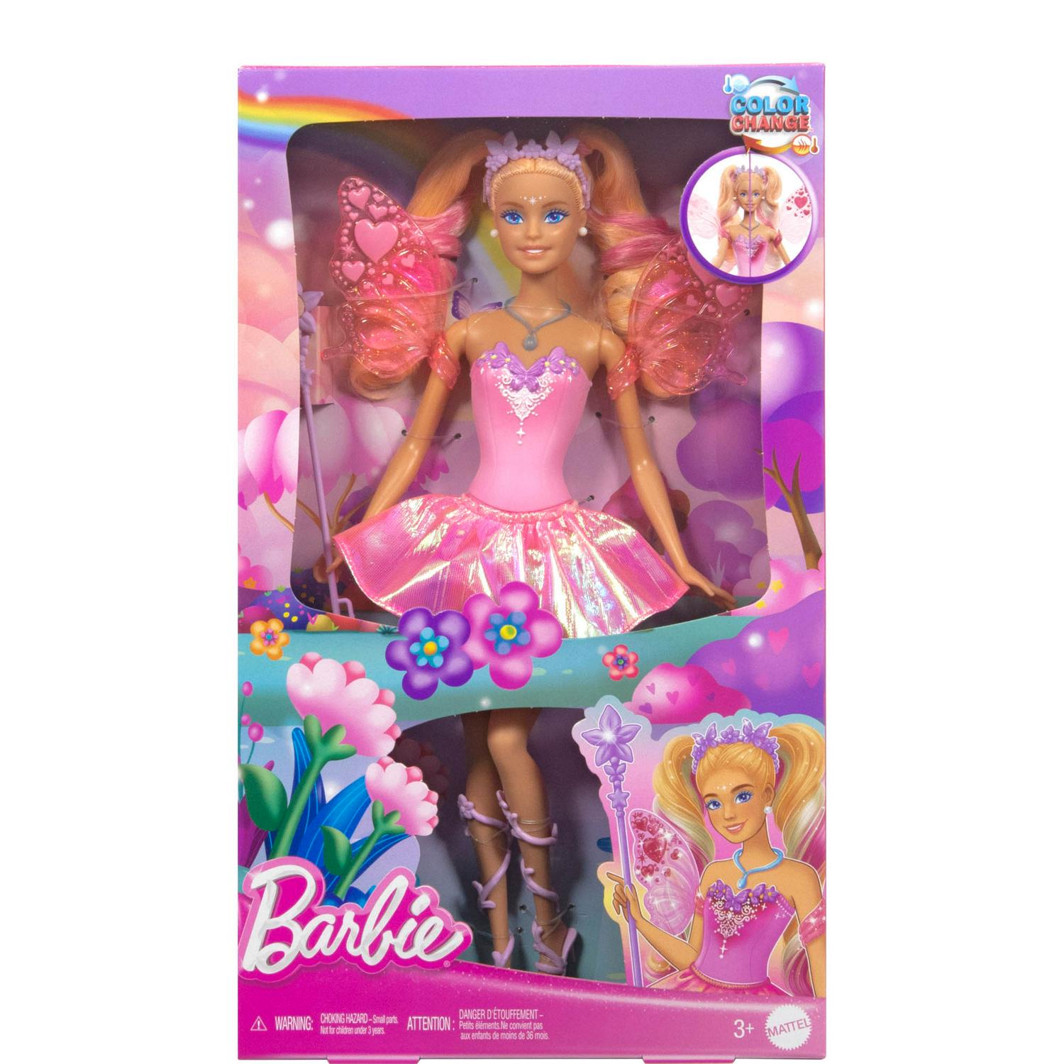 Create enchanting colour magic with this shimmering Barbie fairy doll. She comes ready for imaginative play with an outfit and accessories designed for transformation fun.