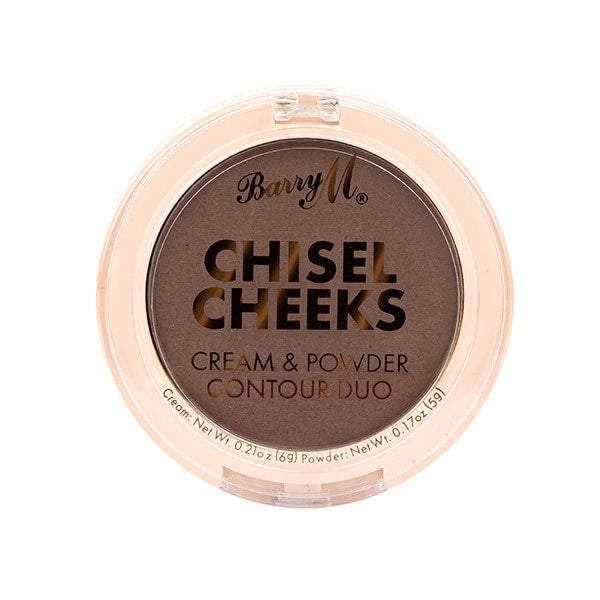 effortlessly sculpt and define with barry ms chisel cheeks cream powder contour duo sculpt and contour with the pigmented cream formula then add definition and warmth with the powder formula