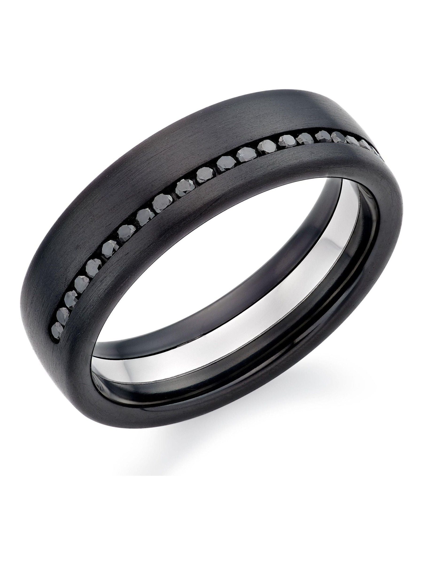 Fusing sleek materials with an undeniably striking appearance, this Platinum and Zirconium Men’s Black Diamond Wedding Ring has been expertly crafted for those who love to make a statement of style.