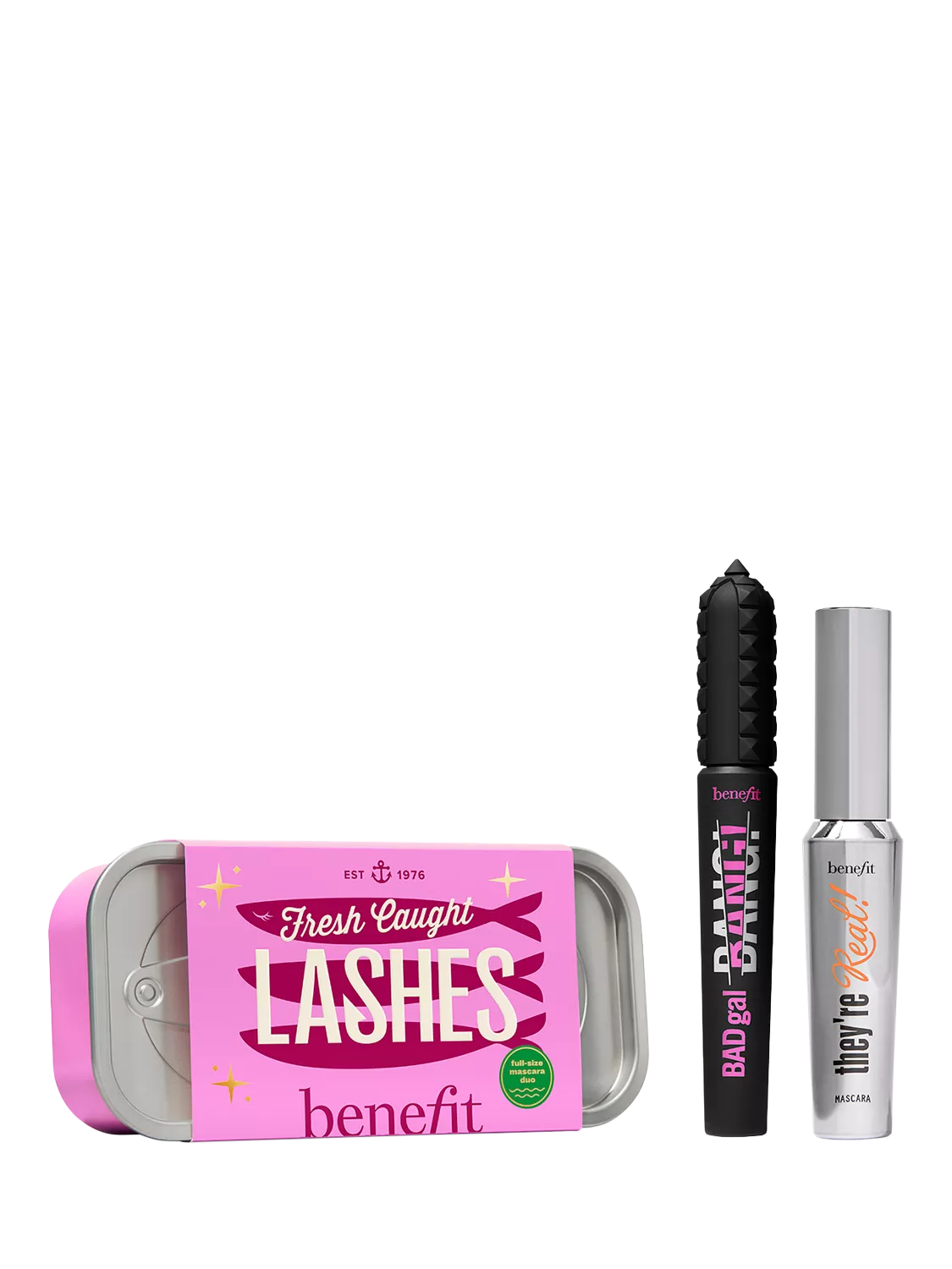 Tell me more... Cast a line for volume with BADgal BANG! and unreal length with They’re Real!, and you’ll reel in a lash look that’s as fresh as can be. Plus, this full-size duo is long-wearing, smudge-proof AND water-resistant, which means no mascara touch-ups needed while you’re gone fishin’.