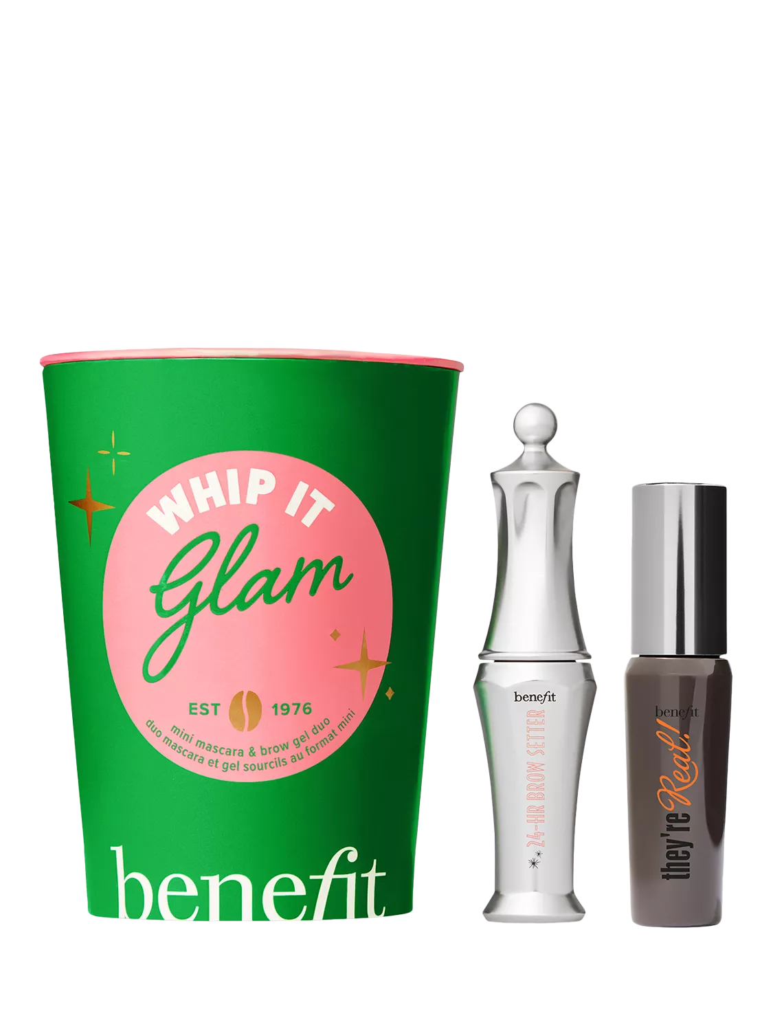 Treat your lashes to unreal length with award-winning They’re Real! mascara. Then, shape, style and set your brows with 24-HR Brow Setter clear brow gel for a look that lasts. With these go-to glam essentials in your cup, your lashes & brows will be oh-so-brewtiful all season and beyond.