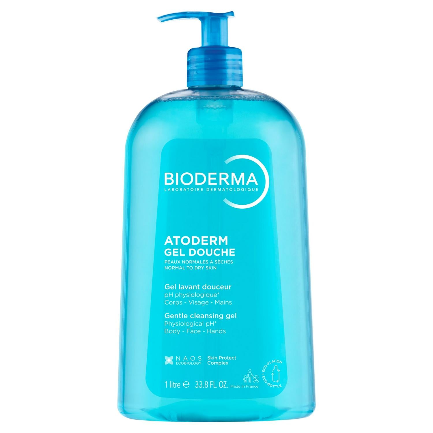 Atoderm Gel douche (Shower gel) is a daily dermatological hygiene product for normal to dry sensitive skin. It ensures gentle cleansing while respecting the skin's balance. With its double biological action, the Skin Protect Complex continuously moisturises the skin and strengthens the skin barrier thanks to niacinamide. Enriched in humectant agents, it increases the skin's natural water reserves instantly and with lasting results. Its light toam provides a pleasant sensation of well-being. Very good cutaneous and ocular tolerance. Tested under dermatological supervision.