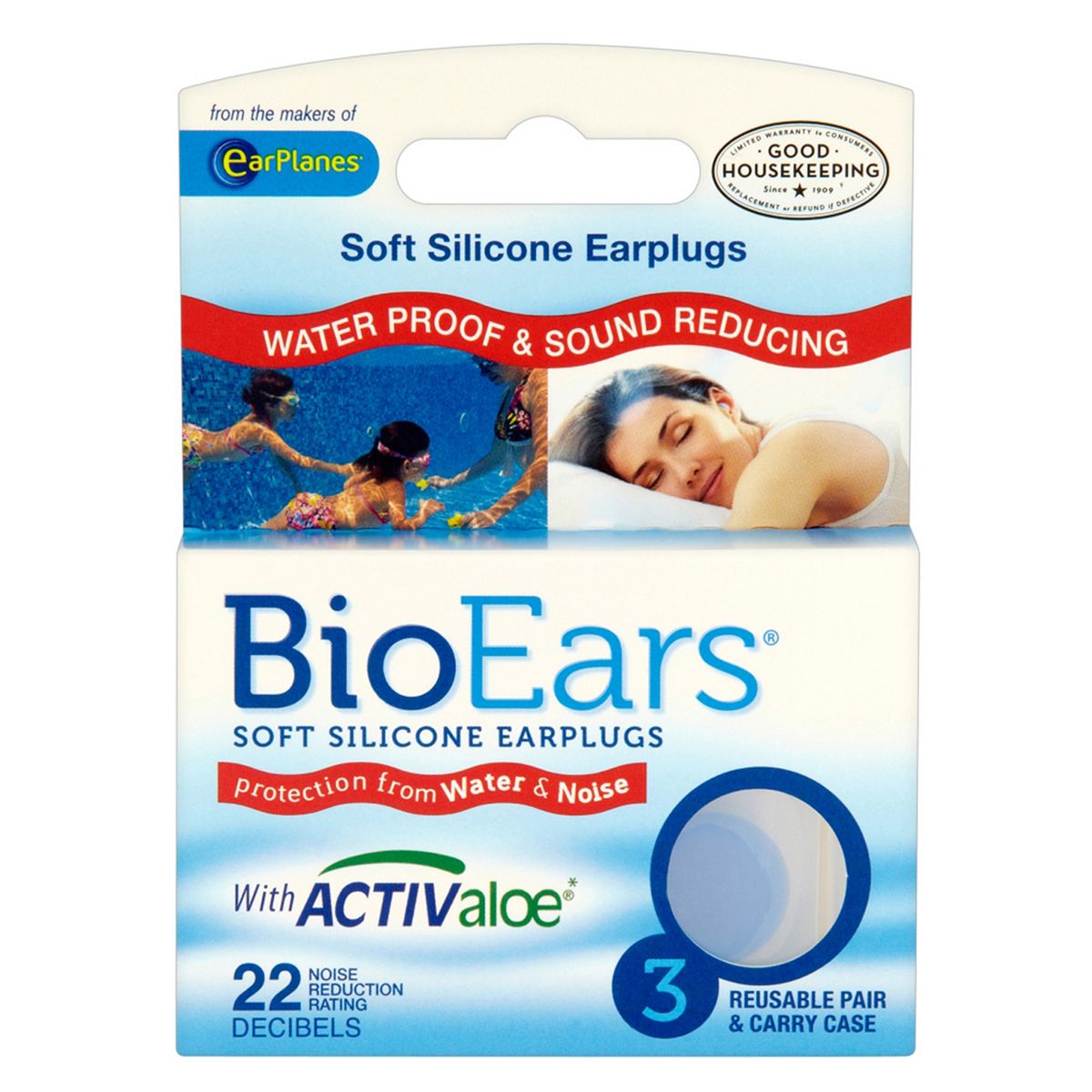 BioEars Soft Silicone Earplugs with Activ Aloe - 3 pairsBioEars Soft Silicone Earplugs are a hygienic, highly effective way to reduce noise or block out water with ActivealoeBioEars Soft Silicone Earplugs are hygienic, reusable earplugs as they contain antimicrobial Alphasan RC 2000 to inhibit the growth of bacteria and mould. BioEars Soft Silicone Earplugs are made from a soft silicone material to expand comfortably within the ear to effectively block out unwanted noise and water. When used as directed BioEars have a noise reduction of 22 decibels, ideal for use at work, to aid sleep, while swimming or to protect hearing against live music.