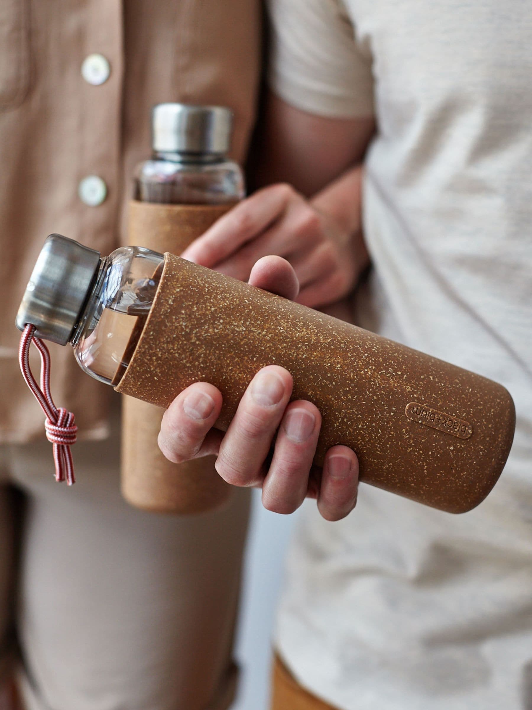 A 600ml Borosilicate glass water bottle with a protective non-slip sleeve, convenient carry loop and full glass and stainless steel contact with water. 100% leak proof. Thread on inside for smooth drinking. High-quality Stainless steel lid. Paracord carry loop. BPA-free. Freezer safe D 6.5cm x H 23.5cm. Read More