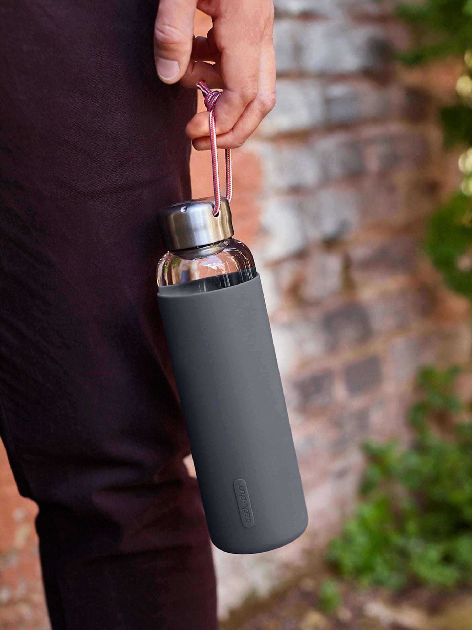 A 600ml Borosilicate glass water bottle with a protective non-slip sleeve, convenient carry loop and full glass and stainless steel contact with water. 100% leak proof. Thread on inside for smooth drinking. High-quality Stainless steel lid. Paracord carry loop. BPA-free. Freezer safe D 6.5cm x H 23.5cm.