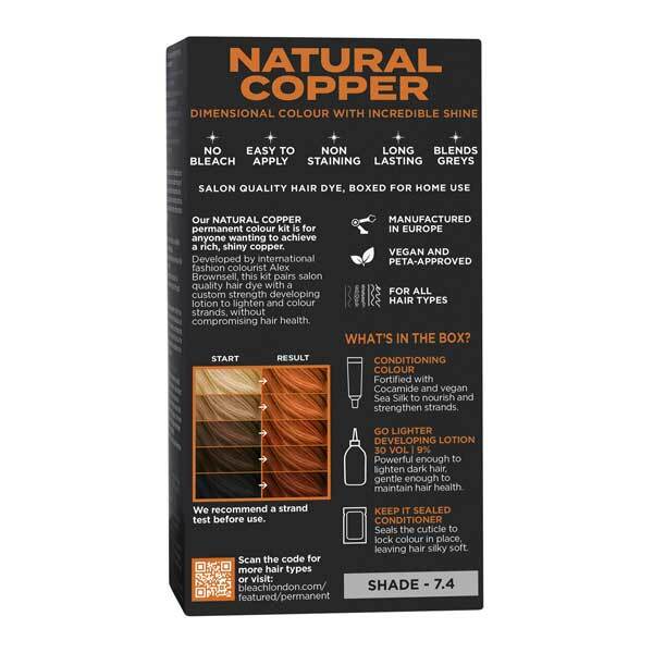 This vegan permanent hair dye kit delivers the shade Natural Copper for lasting colour results. The package contains everything needed for application at home. Achieve a vibrant, permanent change using this accessible hair colouring system.