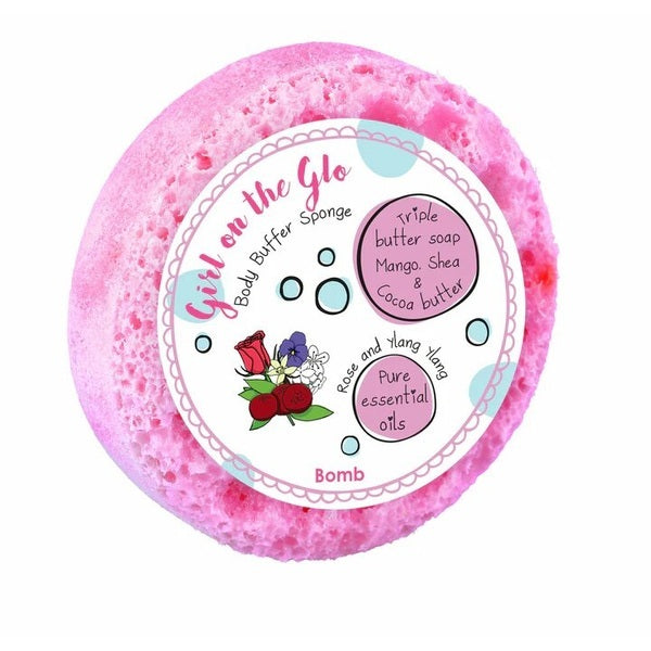 Soap Infused Sponge with Essential Oils Scent: Rose & Ylang Ylang Can be used up to 35 times Proudly cruelty-free & handmade Transform your bathing routine with the luxurious Girl on the Glo Body Buffer Sponge. Designed to cleanse, exfoliate, and moisturise in one easy step, this innovative sponge is infused with delightful essential oil fragrance, offering a refreshing and invigorating experience. Its dual-action design gently removes dead skin cells while delivering nourishing moisture, leaving your skin feeling silky smooth, soft, and hydrated after every use. Completely cruelty-free, vegan-friendly and handmade, this body buffer creates a rich lather, making it perfect for daily self-care or a pampering spa-like experience at home. With the ability to be used up to 35 times, it offers long-lasting value and effectiveness. Compact and travel-friendly, it's ideal for gifting or simply elevating your everyday shower routine. Treat yourself or someone special to the Girl on the Glo Body Buffer Sponge—a little luxury that leaves a big impact on your skin.