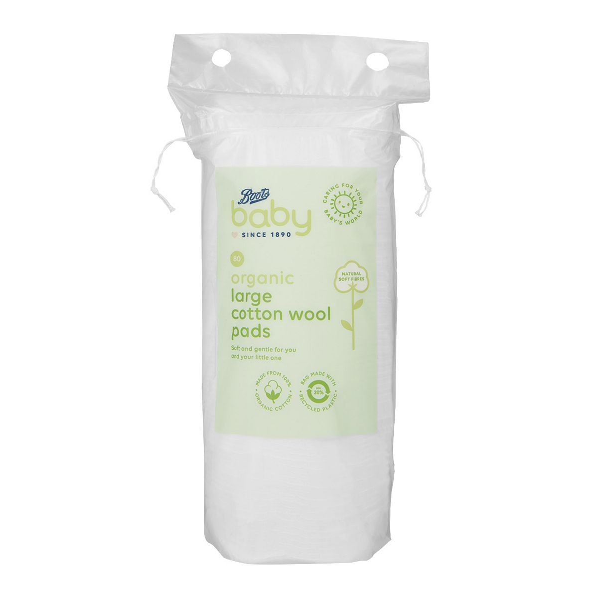 Boots Baby Organic Large Ccotton wool Pads 80s LARGE ORGANIC COTTON WOOL PADSMade from 100% organic cotton, our fluffy large cotton wool pads are as soft and gentle as your little one.Perfect for cleaning, caring and comforting.