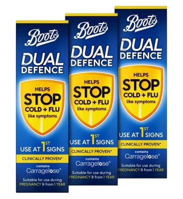 Dual Defence Nasal Spray is an easy to use nasal spray containing clinically proven Carragelose to help shorten the duration and severity of cold and flu-like symptoms.