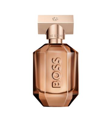 Feel the power of attraction pull you in with BOSS The Scent Parfum for Her, an intense, addictive scent that captures the strong, undeniable chemistry flowing between a power couple.